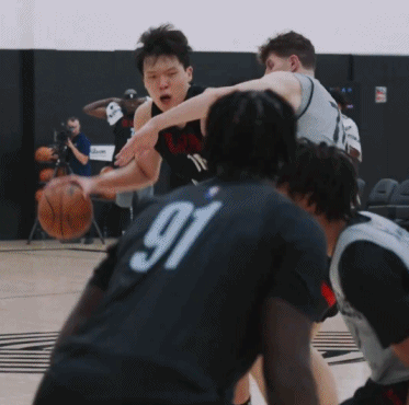 杨瀚森:克林根、霍勒迪和阿夫迪亚,我们在(训练赛)一个队里的时候,在我做错的时候,跑得不对的时候,大家都很帮助我。