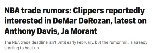 似乎已计划在近期开启“甩卖模式”,各队也开始将目光投向一些可能被交易的球员。据名记阿米克报道,德罗赞正吸引着快船队的兴趣,部分原因在于他下赛季的合同为部分保障——在2700万美元的合同总额中,他仅能拿到1000万美元的保障金额。快船队本赛季开局表现挣扎,前一个月取得5胜12负的战绩,进攻效率排名联盟第21位。