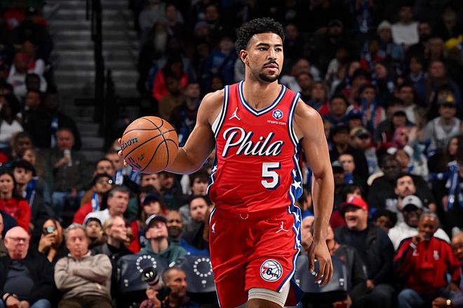 本场比赛中,76人的先发后场大将昆汀-格莱姆斯(Quentin Grimes)的表现简直是一塌糊涂,令人大跌眼镜。格莱姆斯全场出场26分57秒,投篮9中1,三分线外4中0,罚球6中6,仅得到了8分3篮板4助攻的数据,还有3次失误和2次犯规,正负值更是低到了全场最低的-34。格莱姆斯在本场比赛中也是得到了不少的出场时间和出手机会,然而他并没有将自己的得分能力和投射能力发挥出来,他在进攻端的表现实在是非常糟糕,他在传球和组织方面的才能同样没有完全发挥出来,而且他还出现了大量的失误,他在防守端的贡献度也并没有那么高。至少在本场比赛中,格莱姆斯的表现算是灾难级别的,他本应该是一名攻守兼备的球员,能够在攻防两端都起到决定性的作用,但是他在本场比赛中完全没有做到这一点。