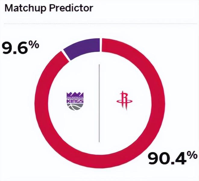 赛前,美媒ESPN对本场比赛进行了胜率预测,火箭队胜率高达90.4%,国王胜率则仅有9.6%,劣势非常明显。