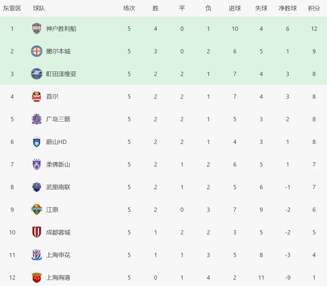 随着申花0-2,亚冠最新积分榜:中超3队连续2轮不胜,排倒数前三